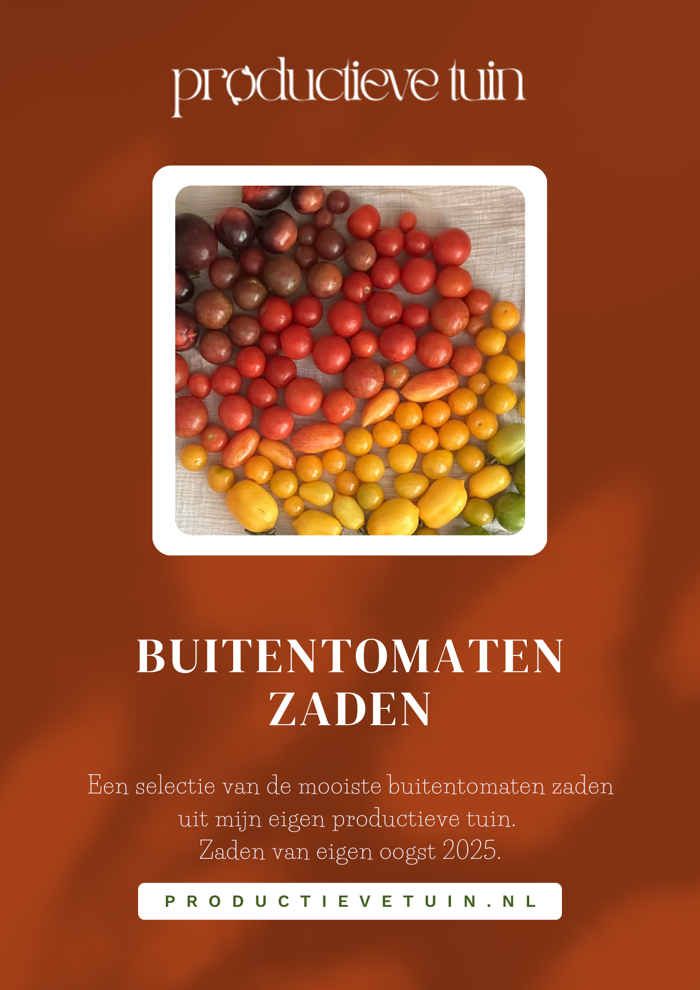 Er zijn veel soorten tomaten. Ik heb een beperkt aantal zaden combinaties geselecteerd om met jou te delen. Deze soorten heb ik al twee jaar zelf buiten gekweekt met veel succes. Ze zijn niet gevoelig voor de tomaten ziekte, moeten opgebonden en gediefd worden en kunnen worden voorgezaaid vanaf half maart. Deze zaden komen compleet met zaai-instructies en tips om de planten gezond te houden. Zaden van eigen oogst 2025.
